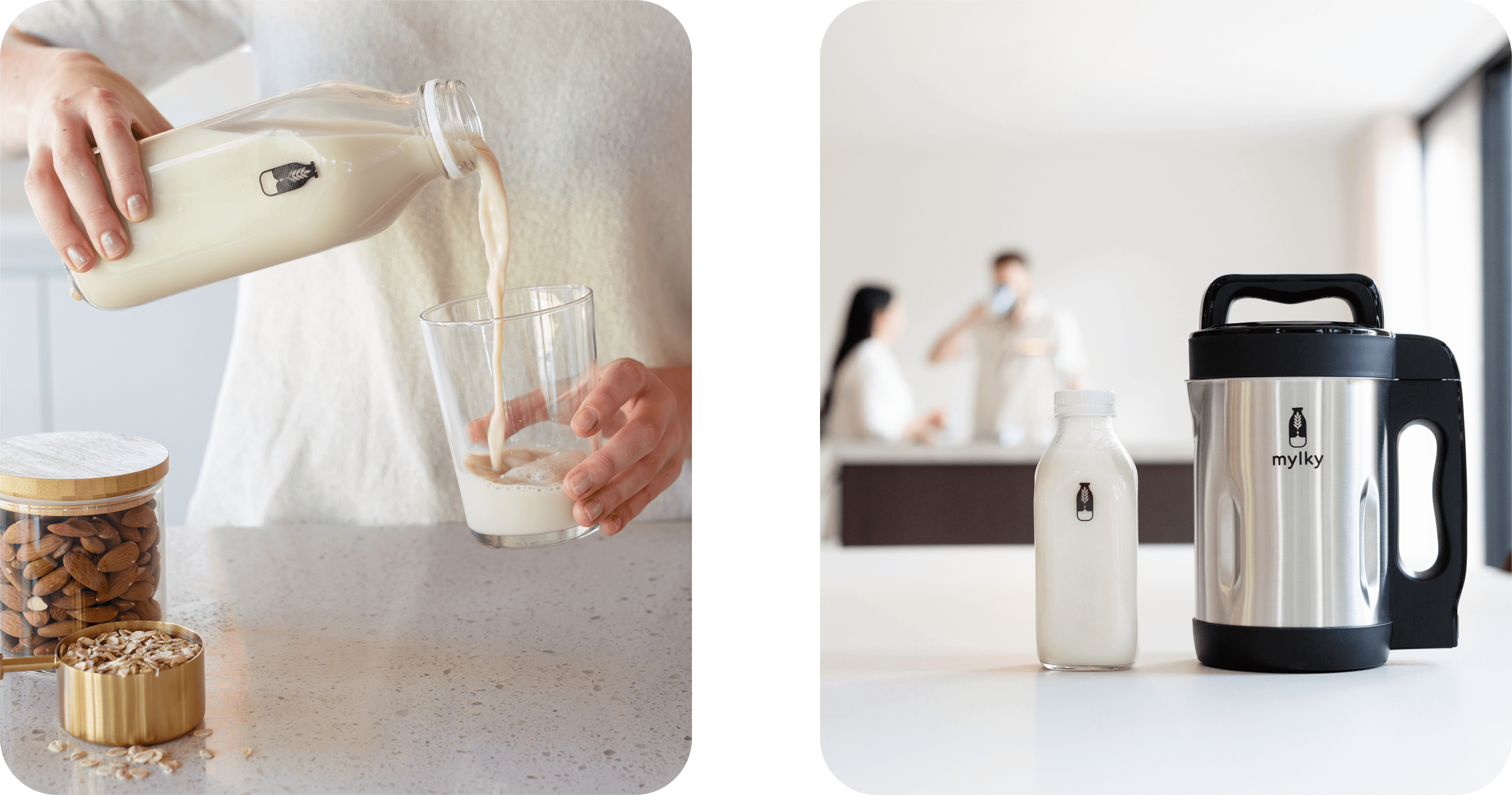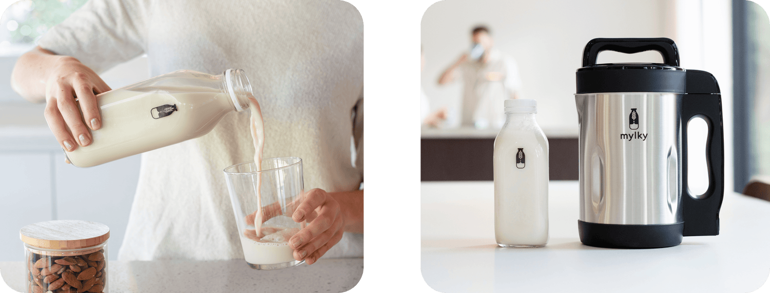 Vi forsøgte at lave vores egen havre- og mandelmælk, men processen var tidskrævende og rodet. Vi ville finde en nemmere måde at lave vores egen plantebaserede mælk på, og indså, at der ikke fandtes nogen gode alternativer.