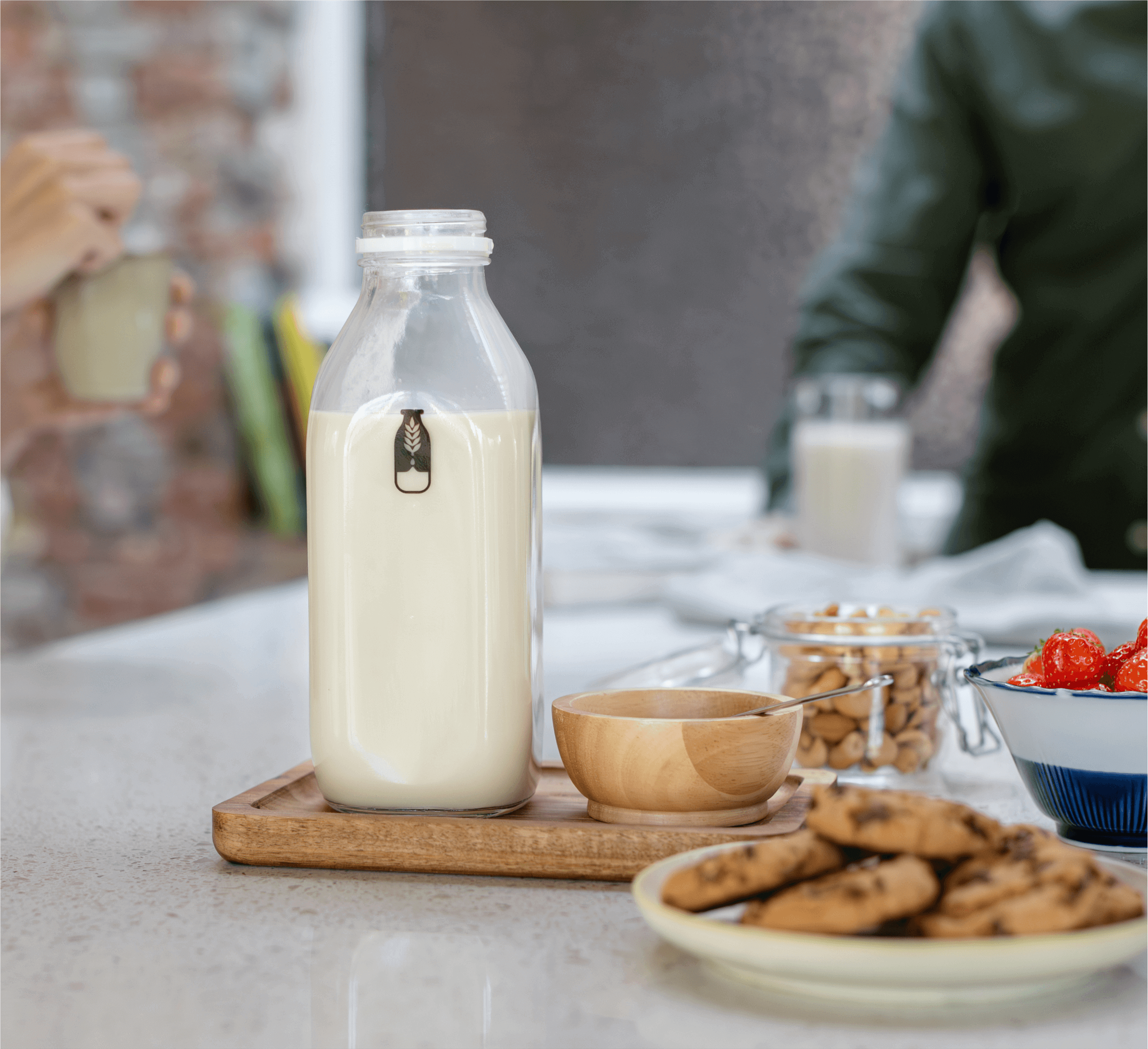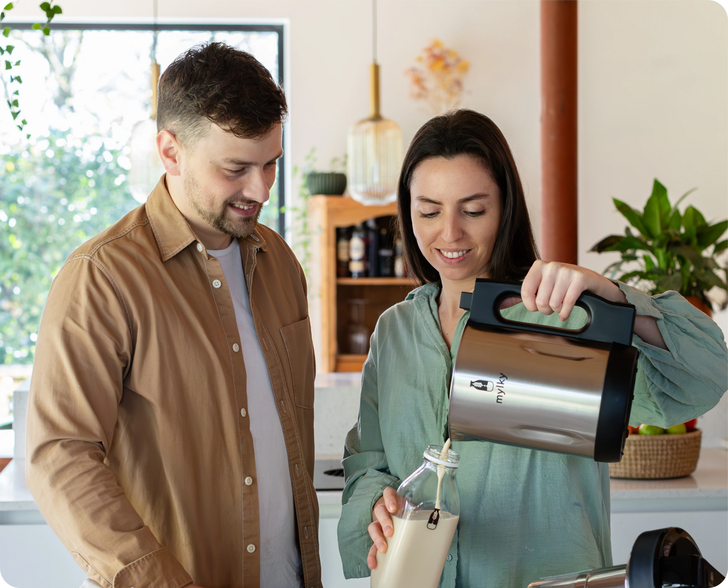 Vi er Martin (fra Sverige) og Isa (fra Belgien). Martin voksede op i Sverige i 90’erne og drak store mængder komælk hver dag. I de seneste år er vi gået helt over til plantebaserede alternativer til mælk – men vi blev trætte af alle tilsætningsstofferne og affaldet fra mælkekartoner.
